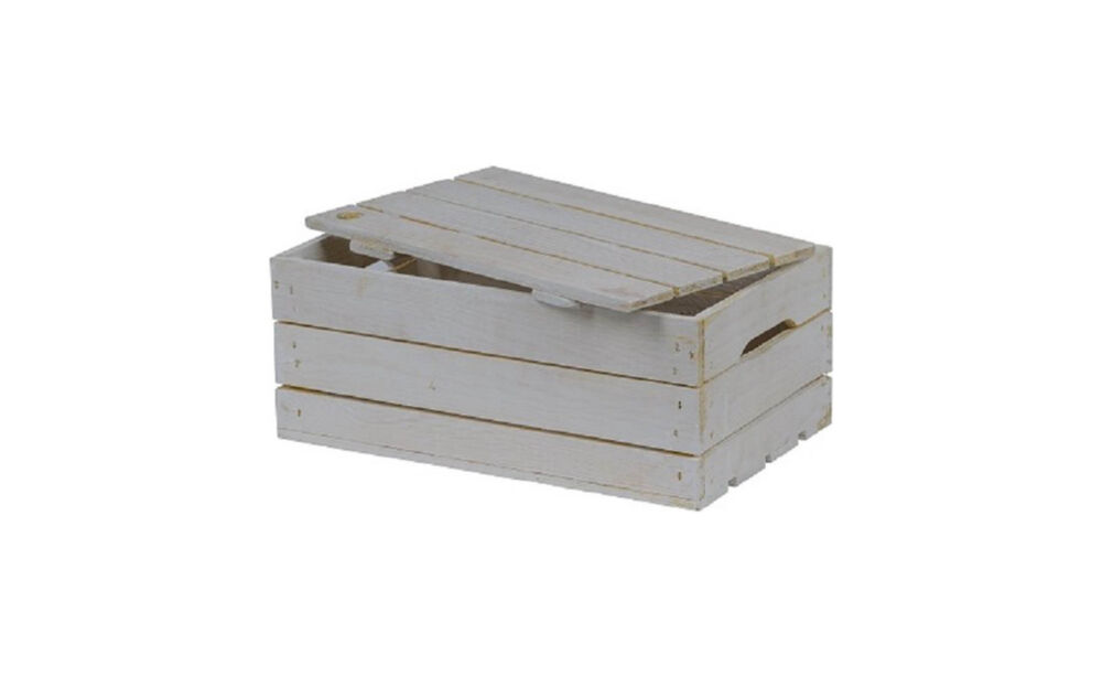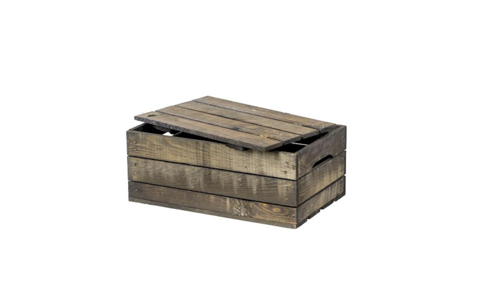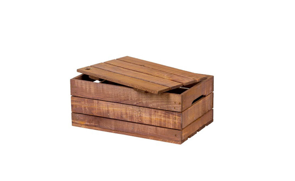 Deze stevige kist  kan mooi opgevuld worden met producten.