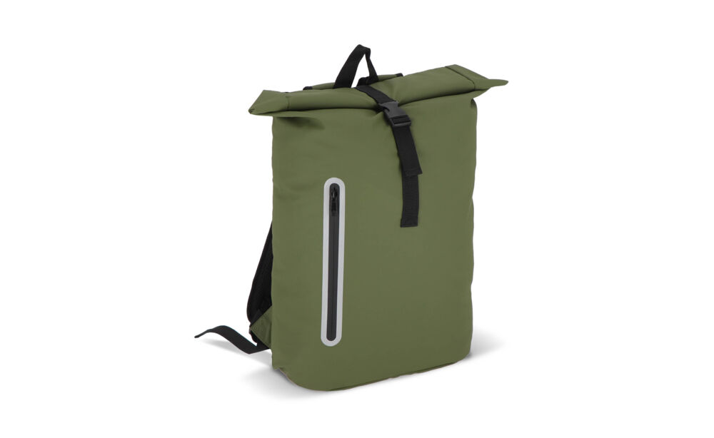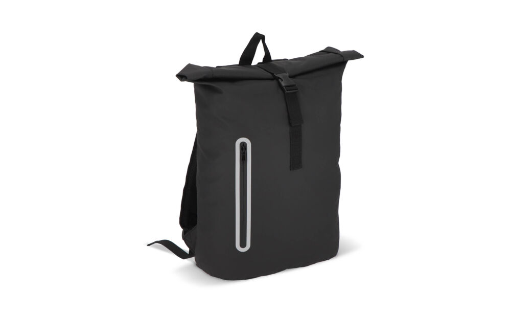 Deze rugzak met roltop is gemaakt van gerecycled PET met PU-coating in 600D-materiaal. Voorzien van reflecterende strips op de schouderbanden en rond het voorvak voor extra veiligheid in het donker. Met handvat, verstelbare gewatteerde schouderbanden en een gewatteerd laptopvak.