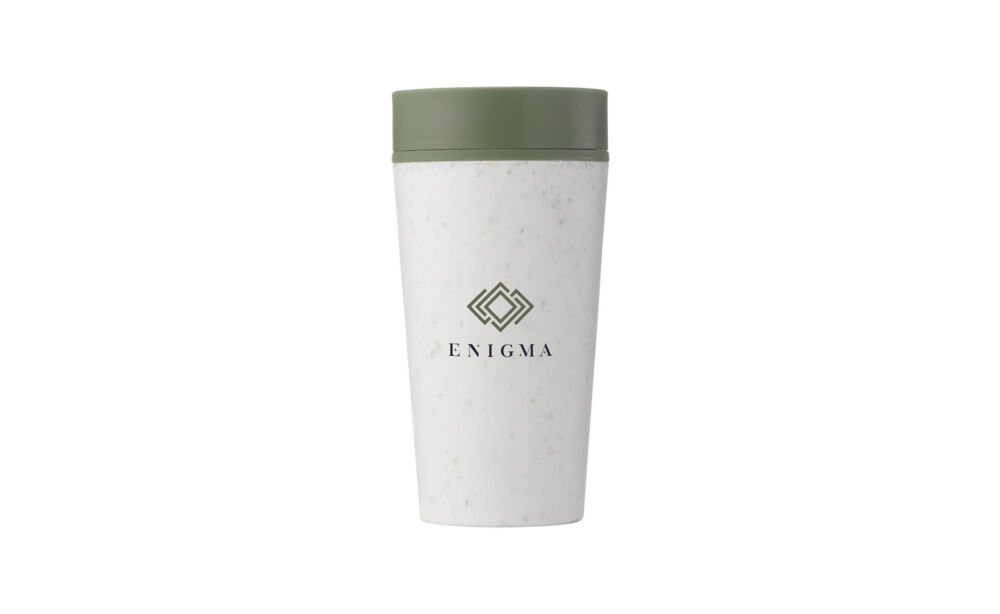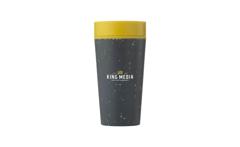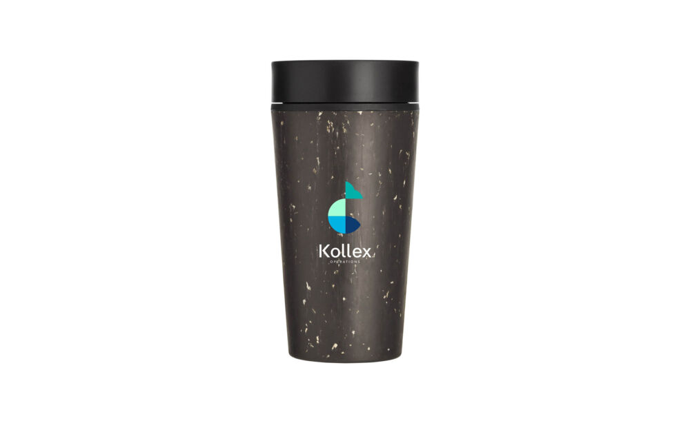 Dubbelwandige, herbruikbare koffie to-go beker met deksel van Circular&Co. De buitenste isolerende laag is gemaakt van gerecyclede single-use papieren koffiebekers. De beker is 100% lekvrij en doordat de deksel is ontworpen met gepantenteerde 360-graden technologie, kan je vanuit elke hoek genieten van een lekker warm drankje.