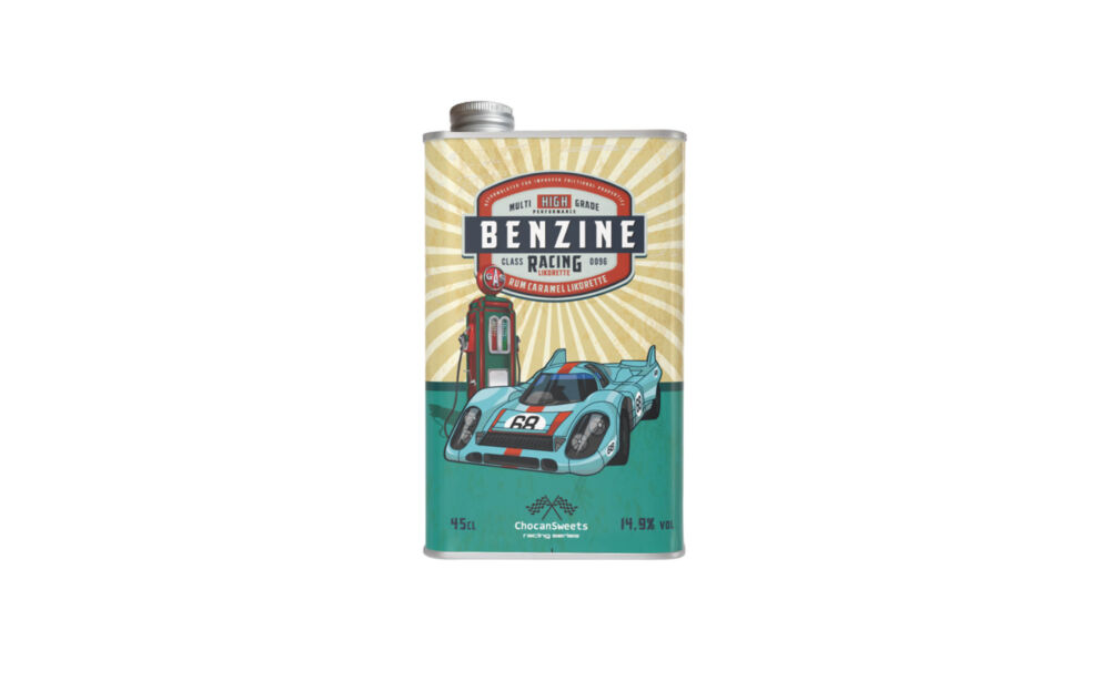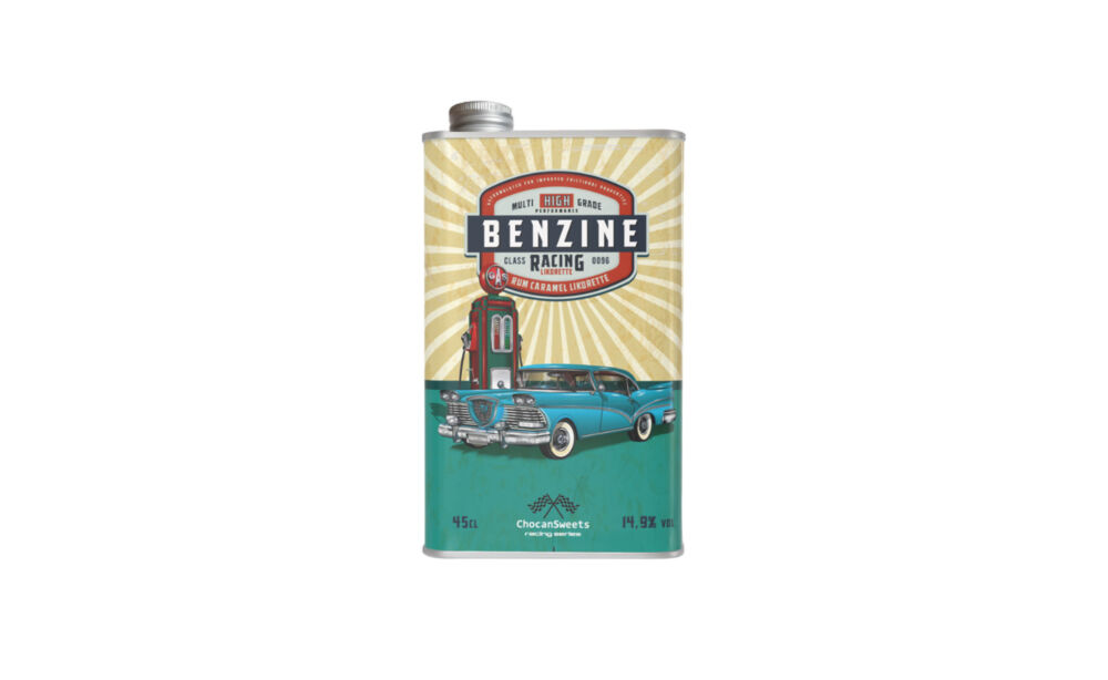 45 cl heerlijke rum caramel likorette met 14,9% alcohol verpakt in een blik gebaseerd op de jaren '50. Verkrijgbaar met een race auto, VW busje, blauwe oldtimer en rode motor.