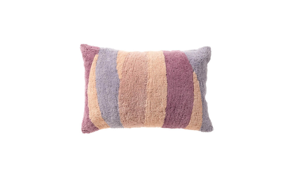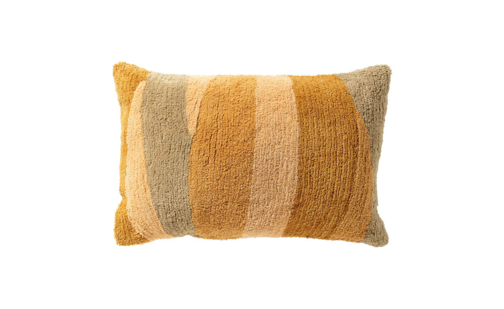 Heerlijk zacht en duurzaam sierkussen in de kleur Sponge. Rechthoekig sierkussen van 40x60 cm in de warme kleur Sponge. De voorzijde heeft een hoogpolige textuur, met banenstructuur in geel en groen. De achterzijde is effen zandkleurig, gemaakt van glad katoen.Gemaakt van 100% katoen, waarvan 85% gerecycled en GRS-gecertificeerd.