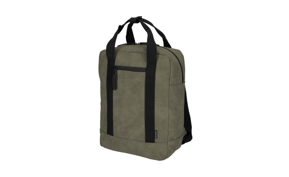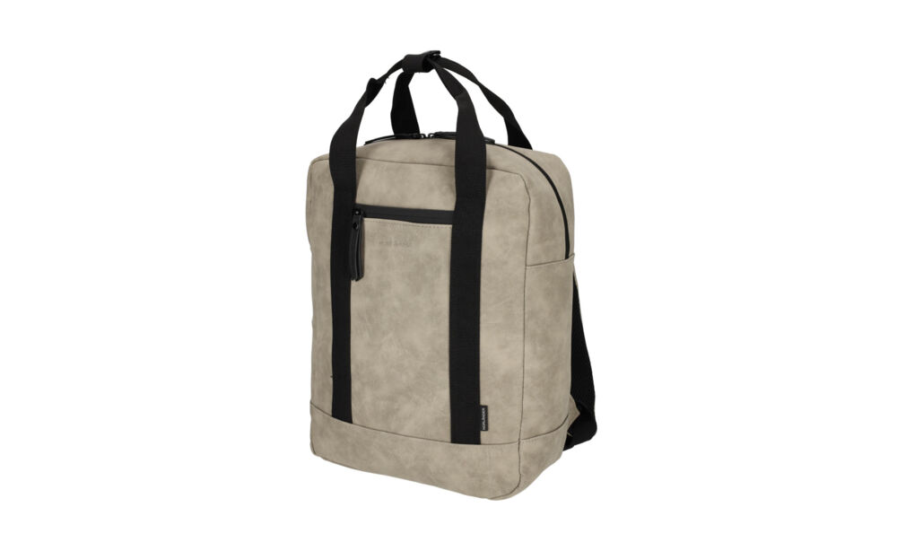 De tas is gemaakt van een waterafstotend vegan leer, de ritsen zijn volledig waterdicht. Daarnaast beschikt de rugtas over een trolleyband, zodat deze makkelijk op een trolleystang bevestigd kan worden. De binnenzijde bestaat uit een groot hoofdcompartiment, laptopvak en twee netzakjes voor kleine accessoires. Aan zowel de voorzijde als de achterzijde bevindt zich een extra afsluitbaar opbergvak. Met de verstelbare schouderbanden pas je de tas eenvoudig aan naar het gewenste draagcomfort.